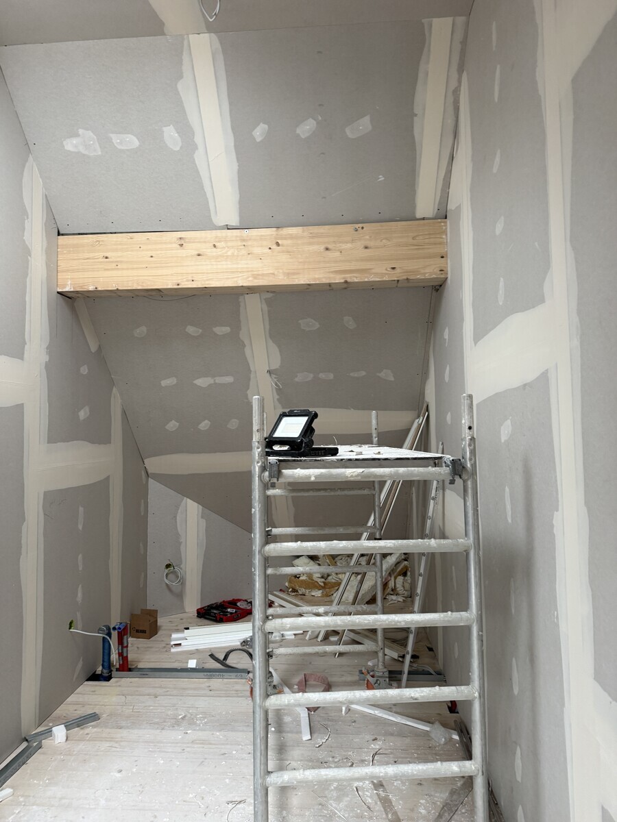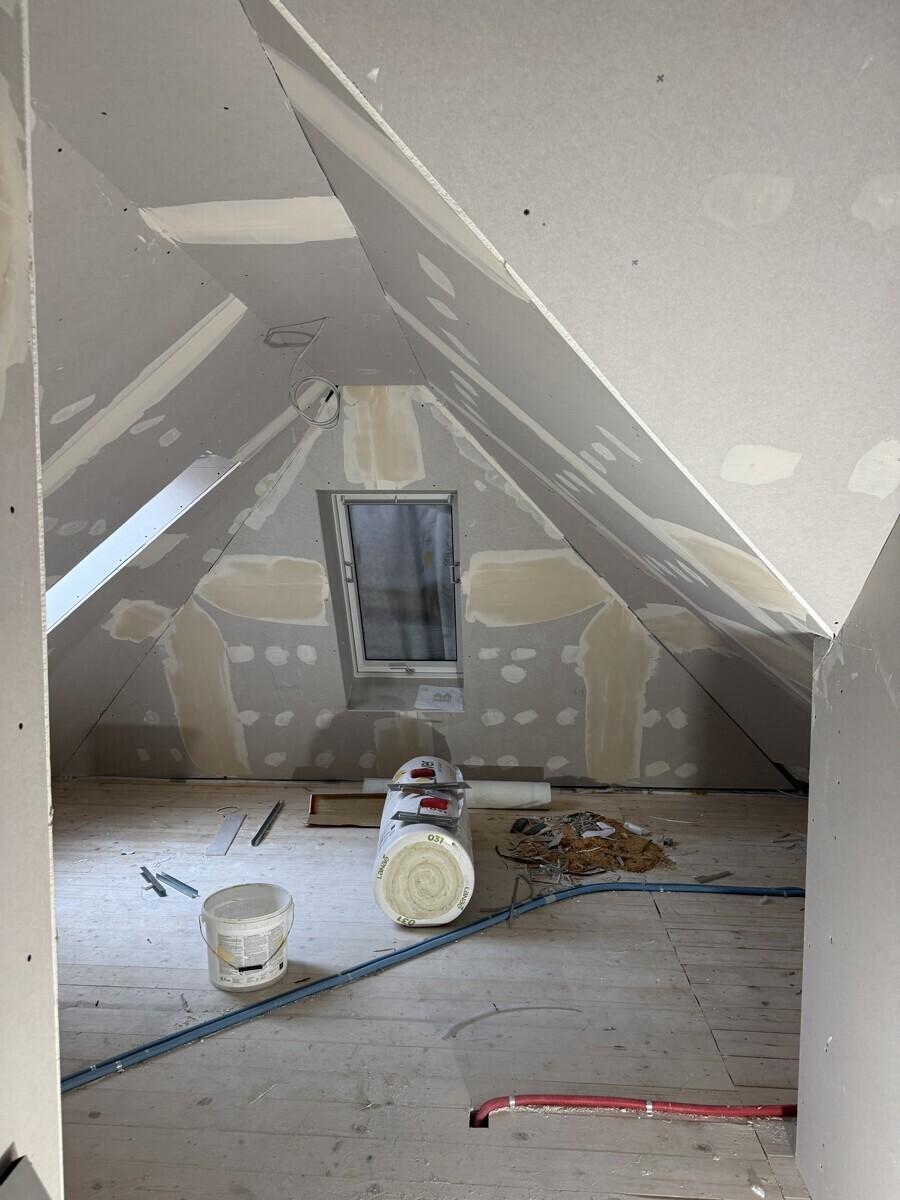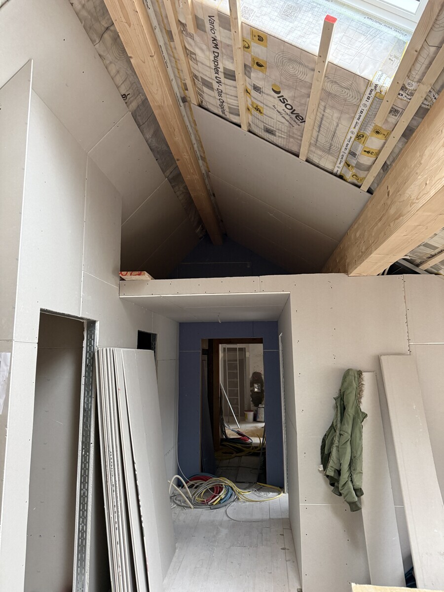 Wir sanieren derzeit das Dachgeschoss in der Rosenaustrasse 29 und dabei entstehen 2 neue Wohneinheiten mit 58/59 qm Grundfläche. Diese 3 ZKB Dachgeschosswohnung wird voraussichtlich im Februar 26 fertiggestellt. Das Gebäude wurde im Jahr 1913 gebaut und steht unter „Ensembleschutz“, die kennzeichnenden Elemente sind beispielsweise die Erker, vertiefte Eingänge und Fenster mit Sprossenteilung und Klappläden.
