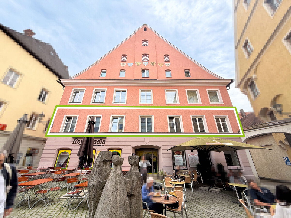 Inmitten der historischen Altstadt von Memmingen, direkt in der Fußgängerzone, befindet sich diese großzügige Wohnung im 1. Obergeschoss eines denkmalgeschützten Gebäudes aus dem 14. Jahrhundert. Die Liegenschaft vereint charmante Altbau-Substanz mit stabiler Mieterstruktur – eine ideale Gelegenheit für Kapitalanleger mit Weitblick.