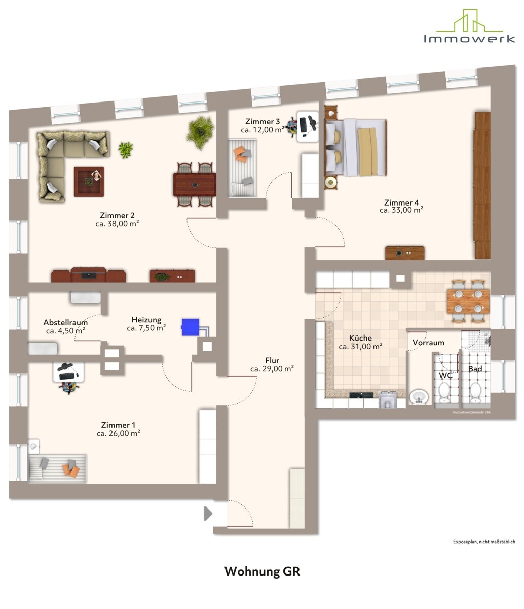 Bei Kauf verpflichtet sich der Käufer an die Immowerk GmbH vertreten durch unseren Kooperationspartner Herrn Felix Preiß, selbstständiger Immobilienmakler, eine Maklerprovision in der angegebenen Höhe nach notariellem Kaufvertrag zu leisten. Durch Ihre Objektanfrage bestätigen Sie die Vereinbarung und Anerkennung dieser Maklercourtage.