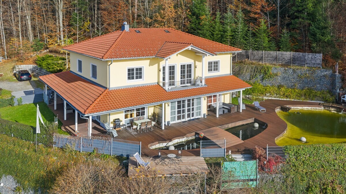 Auf über 2.000 m² Grund erhebt sich ein massiv gebautes Haus mit ca. 288 m² Wohnfläche – geplant nach den Prinzipien des Feng Shui und dem Goldenen Schnitt. Zwei Parzellen, die miteinander verschmelzen wie Yin und Yang – in perfekter Balance.